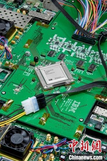 14纳米模拟AI芯片在检测板上(图片来自Ryan Lavine)。施普林格·自然 供图