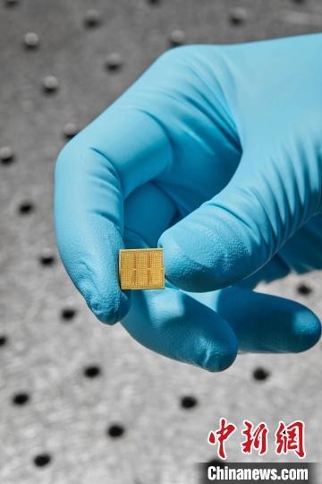 研究者手上拿着的14纳米模拟AI芯片(图片来自Ryan Lavine)。施普林格·自然 供图