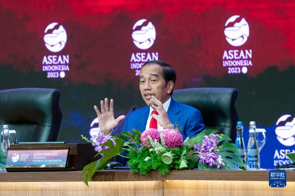 9月7日,在印度尼西亚雅加达,印度尼西亚总统佐科在第43届东盟峰会闭幕后召开新闻发布会。新华社发(维里 摄)