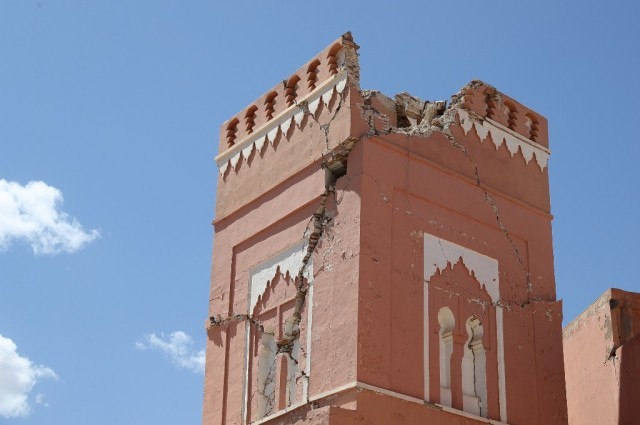 这是9月10日在摩洛哥震中附近的艾米兹米兹村拍摄的受损建筑。新华社记者王东震摄