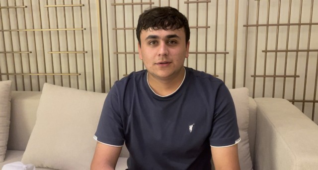 第一次来中国旅游经商的塔吉克斯坦小伙李飞(Fozilzoda Firdavs)在接受中国日报记者独家专访。