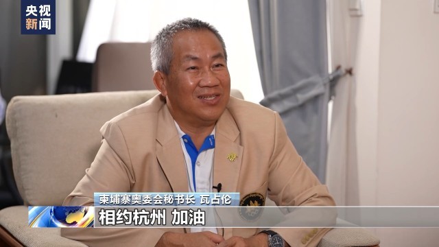 柬埔寨奥委会秘书长 瓦占伦:柬埔寨组织了约200人的体育代表团参加此次亚运会,其中有135名运动员,分为17个运动项目,有12个运动项目需要提前在中国进行训练。我们知道中国在体育领域取得了很大成就,并且有着经验丰富的高水平教练。这些教练给我们柬埔寨运动员传授了很好的经验。相约杭州,加油!