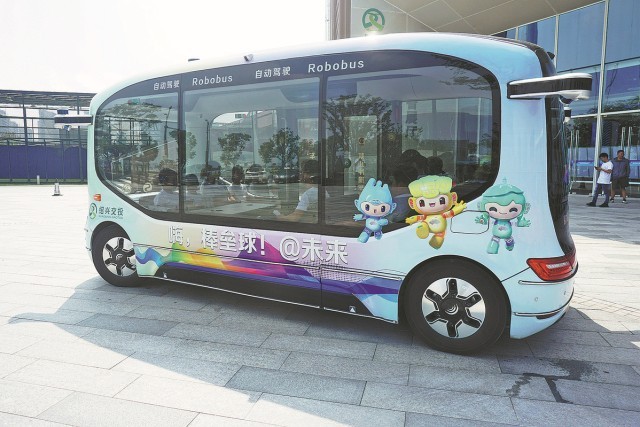 自动驾驶电动班车将为亚运会提供服务。龙伟/中国日报