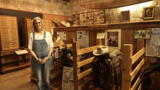 正因为有这种传统,班德拉的生活有很多内容和马有关。小镇人口不足900人,一条站在这头可以望见那头的主街上,触目皆是马和骑马牛仔的形象:路灯杆上的镂空马饰,商店屋顶昂首的马雕,廊下长椅的双马头椅背,餐馆柜台的马鞍座高凳……小镇“边疆时代博物馆”义务讲解员特雷莎·多伊尔-纳尔逊说,至今仍不时会有牛仔和游客骑马穿过小镇,当地中学也为学生提供牛仔竞技表演训练课程。