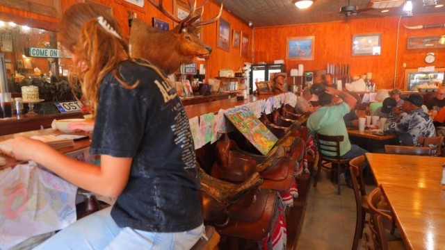 班德拉小镇上的一家餐馆,柜台前的座位是马鞍座形状。