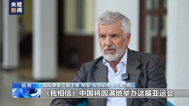 (杭州亚运会)国际奥委会副主席 胡安·安东尼奥·萨马兰奇:是的,昨晚(23日)我们在非同凡响的杭州奥体中心观看了开幕式,整场仪式精彩绝伦,呈现了各种美的结合,整场各个环节流畅而不杂乱,充分体现了时代的特点,还极具艺术性。看到本届亚运会隆重开幕,我十分欣喜,这届精彩的亚运会迈出了重要的第一步,(我相信)中国将圆满地举办这届亚运会。中国举办国际赛事让人看起来中国组织起赛事似乎毫不费力,但是我们深知其中过程有多艰难,我们为中国朋友们的赛事组织能力总是让人印象深刻而点赞。