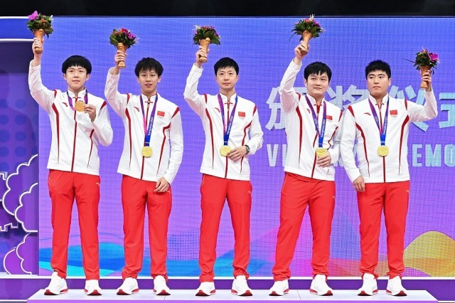 【环球时报赴杭州特派记者 张振 环球时报特约记者 许云峰】“中国队这堵墙太高太厚,想要跨越实在太难。”日本乒乓女队主教练渡边武弘如此表示。26日,亚运会乒乓球项目产生的两枚金牌全部被中国队收入囊中。率先进行的女团决赛中,中国女队以3∶0战胜日本女队,实现亚运五连冠,孙颖莎、陈梦和王曼昱先后击败早田希娜、平野美宇和张本美和。男团决赛中,王楚钦、樊振东、马龙领衔的中国男队3∶0轻取韩国男队,实现亚运会该项目八连冠。