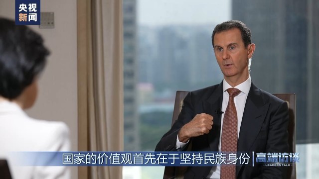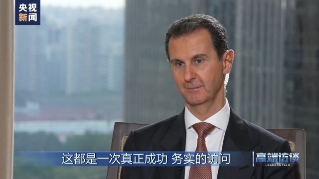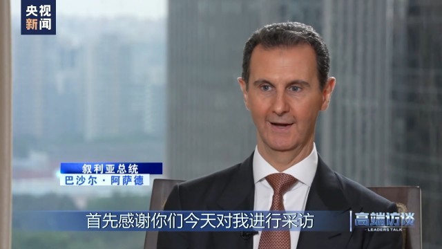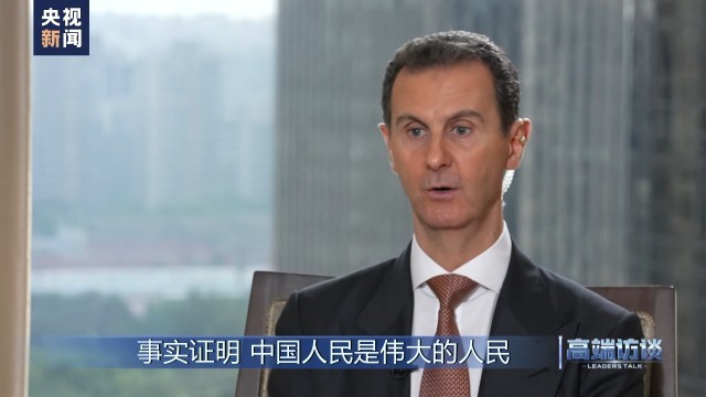 巴沙尔:感谢你给我机会,通过你们频道、你们节目向中国人民说这些话。我想向中国人民表示祝贺,祝贺你们过去几十年取得的成就。事实证明,中国人民是伟大的人民。我不是嘴上说说,而是事实的确如此。我们祝愿中国实现国家愿景,在国际上,中国的愿景也是当今世界大多数国家的愿景。谢谢你的采访!