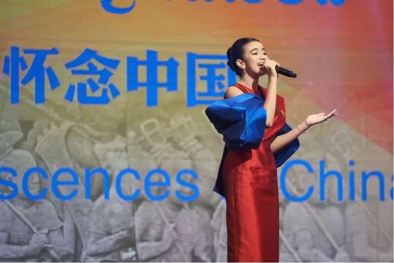 9月28日,柬埔寨金边,在国庆招待会现场,柬埔寨王室珍娜公主倾情演唱《怀念中国》。中国驻柬埔寨大使馆供图