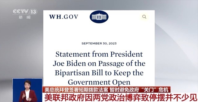 当地时间9月30日晚,美国总统拜登签署了一项短期拨款法案,暂时避免了美国联邦政府再次发生停摆的危机。当天早些时候,美国国会众议院和参议院先后通过了该法案。据了解,该法案将为美国联邦政府提供为期45天的资金,其中包括白宫要求的自然灾害援助,但不包括对乌克兰的资金支持。