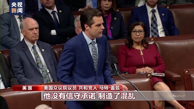 美国众议院议员、共和党人 马特·盖兹:议长麦卡锡就是混乱本身,他没有信守承诺,制造了混乱。