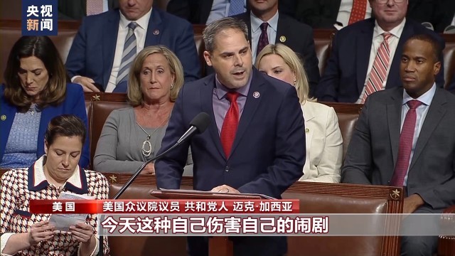美国众议院议员、共和党人 迈克·加西亚:今天这种自己伤害自己的闹剧,会危及我们的众议院多数党地位。