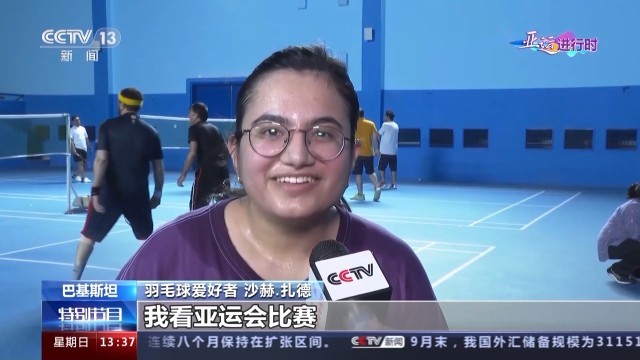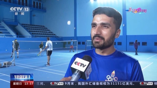 羽毛球爱好者 沙赫·扎德:我一直就喜欢打羽毛球,这里的设施非常齐全,所以我经常会来到这里练习。我喜欢中国的诗歌文化,在大学时期还学了一点中文。我看亚运会比赛。