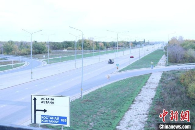 哈萨克斯坦首都阿斯塔纳的西南环城公路,全长共计34.4公里,其中18.1公里由通用技术集团所属新兴公司(简称“通用技术新兴公司”)建设实施。于2019年11月正式通车,2022年1月实现交付运营。中新社记者 张硕 摄