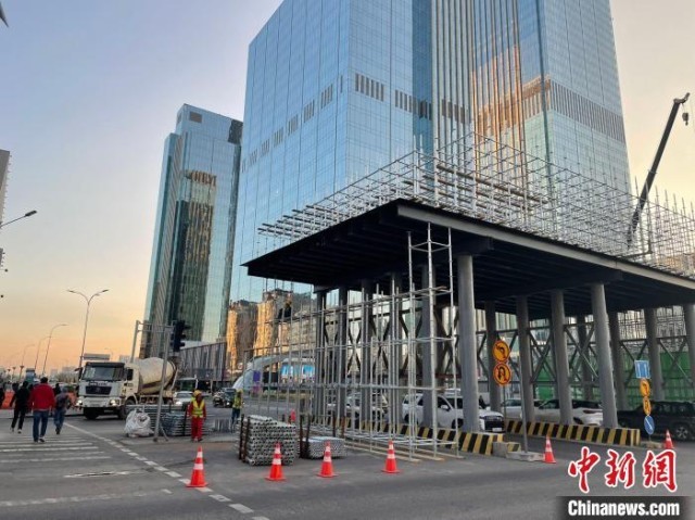 由中企施工建设的阿斯塔纳轻轨是哈萨克斯坦首条城市轻轨。图为10月5日建设中的阿斯塔纳轻轨项目。中新社记者 张硕 摄