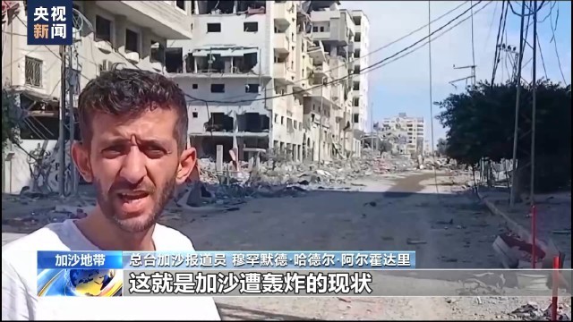 以色列军队对加沙地带的空袭已经持续了十多天,包括加沙城在内的加沙地带大部分地区都已经被严重炸毁。来看总台加沙报道员在前方发回的报道。