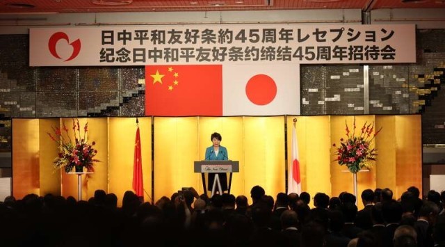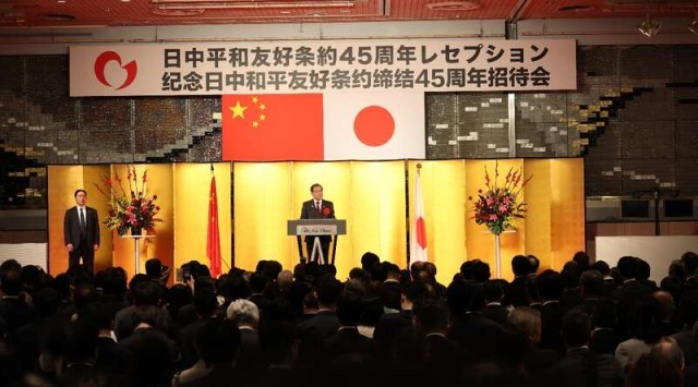 10月23日,纪念中日和平友好条约缔结45周年招待会在东京举行。中国驻日本大使吴江浩现场致辞。中青报·中青网记者 贾沂蒙/摄