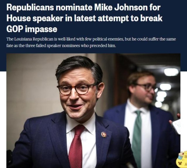 法新社还指出,约翰逊是共和党在大约两周内,所提名的第四位众议院议长候选人,凸显这个“分裂的”的政党陷入了混乱。