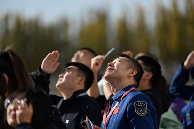 10月26日,酒泉卫星发射中心,人们在发射现场观看。图片来源 视觉中国