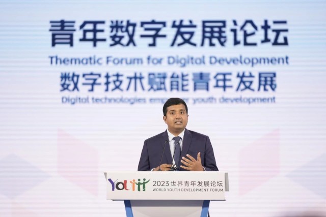 中国青年报客户端北京10月31日电(中青报·中青网见习记者 赵安琪 记者 陈小茹)10月31日,2023年世界青年发展论坛青年数字发展主题论坛在北京举行。联合国开发计划署亚太局区域青年项目经理萨文达·拉纳松加在论坛开幕致辞时表示,对于青年参与数字发展来说,重要的是找到具体问题的解决方案,找到青年在数字世界里的发展前景,让青年和社会都通过数字技术实现可持续发展。