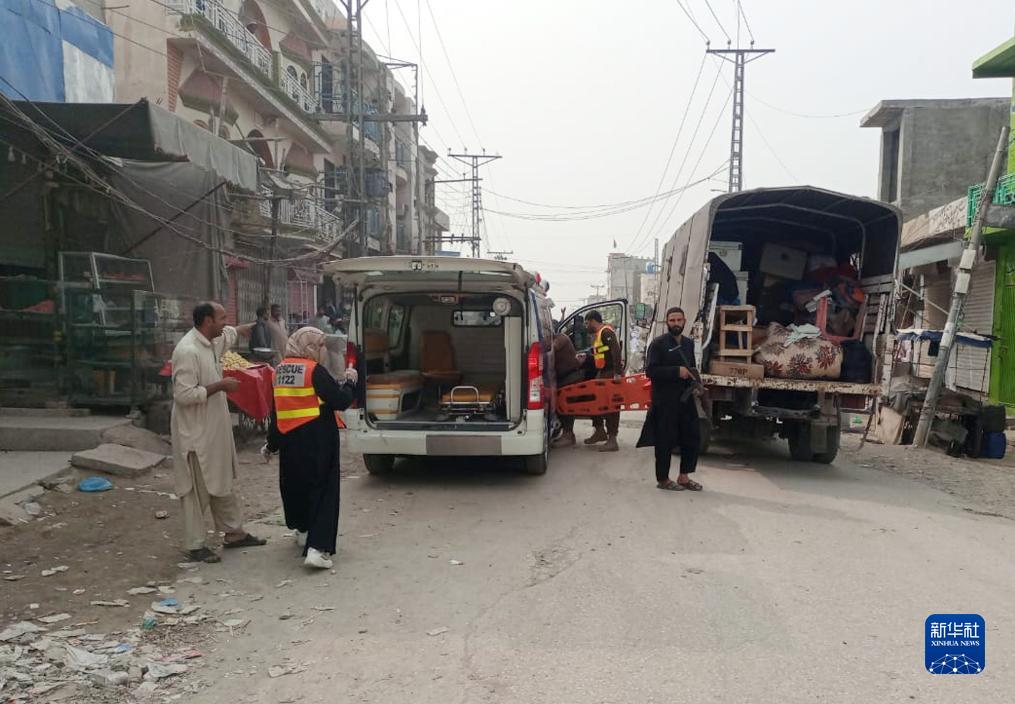 11月3日,在巴基斯坦开伯尔-普什图省德拉伊斯梅尔汗地区,安全人员和救援人员到达爆炸现场。新华社发