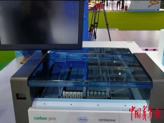 在罗氏中国的展台上,除了即将在华推出的新药外,还有医院实验室诊断类产品。罗氏诊断的相关负责人告诉记者,这些都是专门适应中国市场而打造的。比如,中高通量实验室生化和免疫检测需求的cobas pro整体解决方案是专为大医院打造的,它能在1小时内对4000个血液样本进行检验,样本放进这台仪器内,全程自动化做实验、出结果;而占地仅1平方米的cobas 5800系统则是为社区医院、二级医院设计的,它占地面积小,适合“快进快出”。