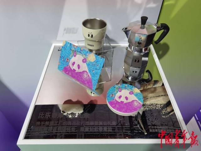 天猫国际展台上的“熊猫花花”联名商品。中青报·中青网记者 魏其濛/摄