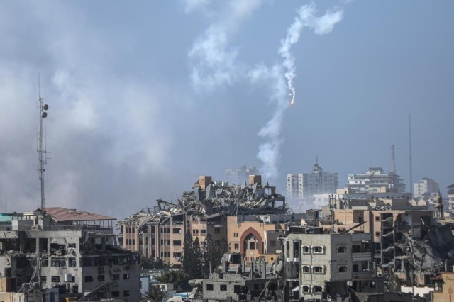11月9日,加沙城建筑遭以色列军队空袭后升起浓烟。新华社发