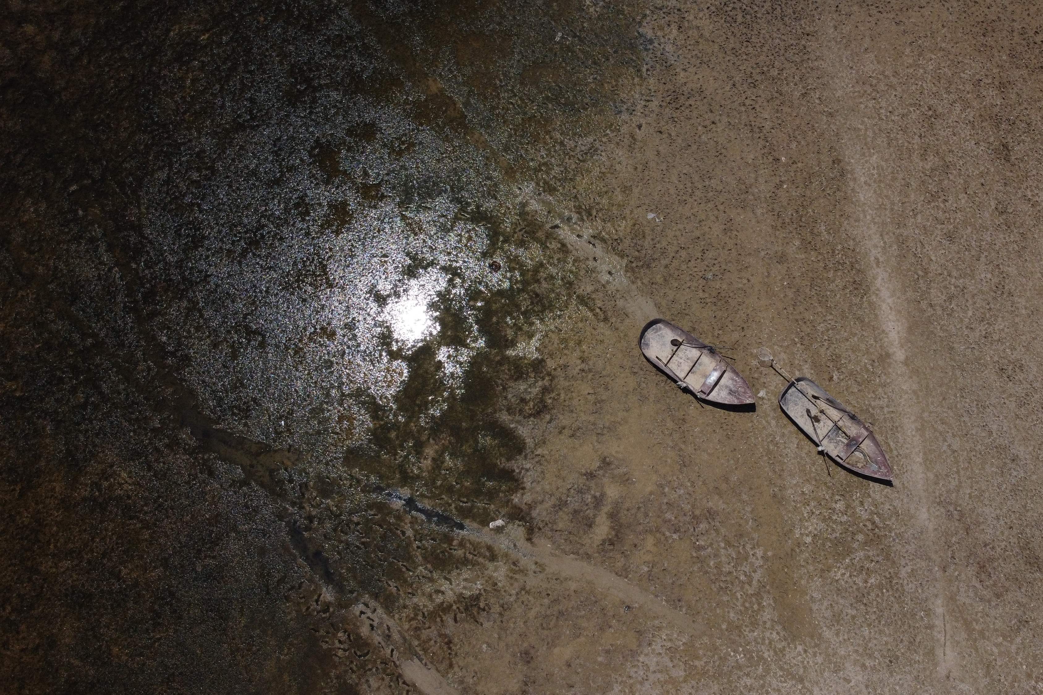 7月12日,叙利亚拉卡省塔韦希纳村,幼发拉底河干涸河床上的渔船。图片来源 视觉中国