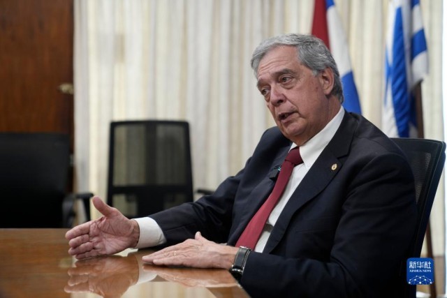 “乌拉圭是中国可靠的合作伙伴。”11月16日,乌拉圭畜牧业、农业和渔业部长费尔南多·马托斯在乌拉圭首都蒙得维的亚接受新华社记者专访时表示,乌方希望深化与中国在农牧业领域的各项合作,成为中国“可信可靠的粮食供应国”。 新华社发(尼古拉斯·塞拉亚摄)