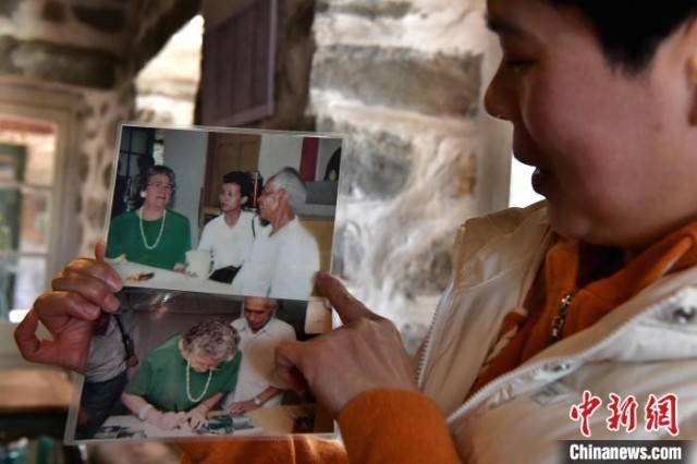11月18日,福州鼓岭,郭秀玲向记者展示爷爷郭茂炉与加德纳夫人的合影。 中新社记者 张斌 摄