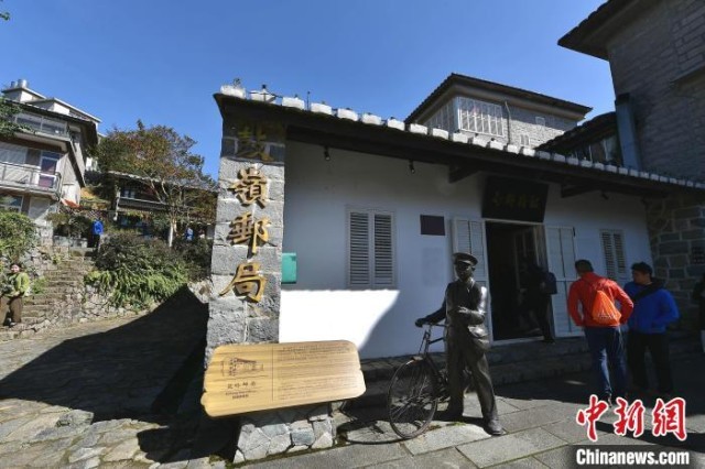 11月18日,游客在鼓岭邮局参观。如今,在古井饮水、在柳杉王下合影、去鼓岭邮局寄明信片,成了中外游客鼓岭行的必选项。 中新社记者 张斌 摄