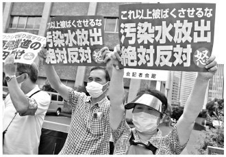 8月22日,日本民众在东京首相官邸前紧急集会,抗议政府无视民意启动核污染水排海。 新华社记者 冯武勇 摄