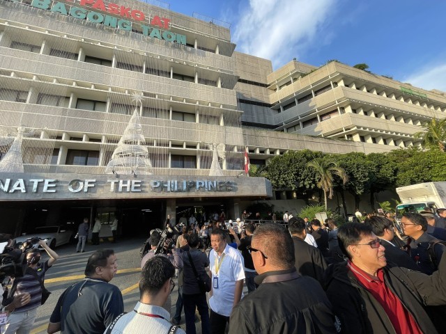 △12月5日下午,菲律宾参议院工作人员在地震期间外出避险(图片来自:菲律宾媒体)