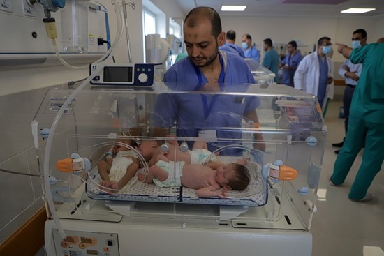 希法医院的31名早产儿是幸运的。据《华盛顿邮报》报道,在加沙地带的纳斯尔医院,一位护士曾面临人生中最艰难的抉择。该医院的工作人员称,曾在11月10日接到以色列下达的最后通牒,要求医护人员离开医院,否则会被轰炸,并向他们作出了将转移病人的承诺。最后,这名护士只带上一个身体最强壮的早产儿离开了医院,向南部逃离。他没有能力把其他4名婴儿带走,他们身体太弱,离开氧气瓶,很快会死去。