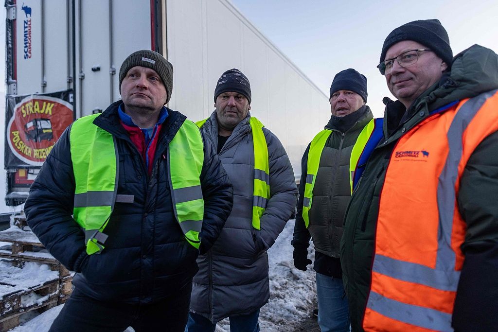12月4日,波兰赫雷本内,波兰多家运输公司的卡车司机封锁了通往波乌边境的通道,抗议“不公平”竞争。图片来源视觉中国