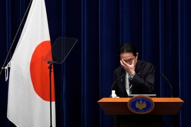 12月13日,日本首相岸田文雄在日本东京首相官邸召开记者会。新华社发(Pool图片,弗兰克·罗比雄摄)