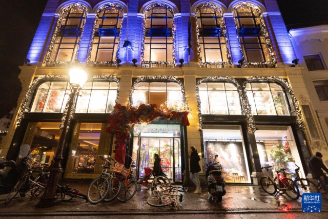 12月21日,行人从荷兰阿姆斯特丹一家商场的橱窗前走过。 新华社发(西尔维娅·莱德雷尔摄)