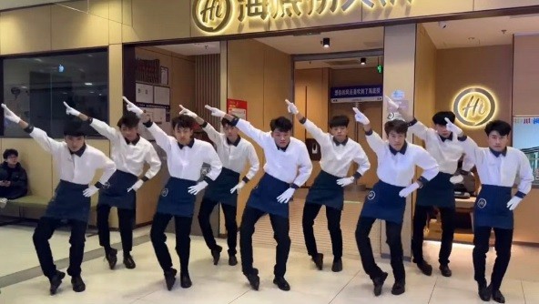 海底捞火锅门店服务员表演“科目三”舞蹈(俄罗斯卫星社网站)