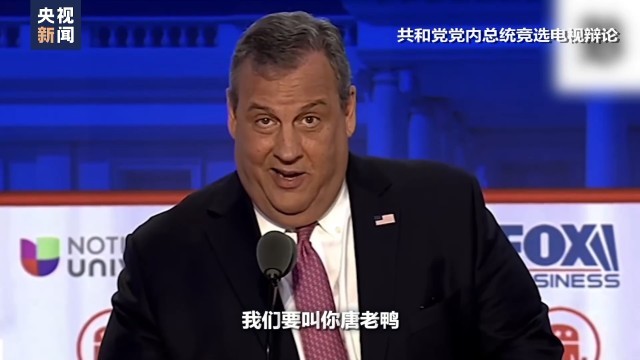 美国前新泽西州州长 克里斯蒂:我现在要对着摄像机跟你说,唐纳德,我知道你在看直播。你忍不住(会看的),你继续这样做(躲避辩论),没有人会再叫你唐纳德·特朗普了,我们要叫你唐老鸭。