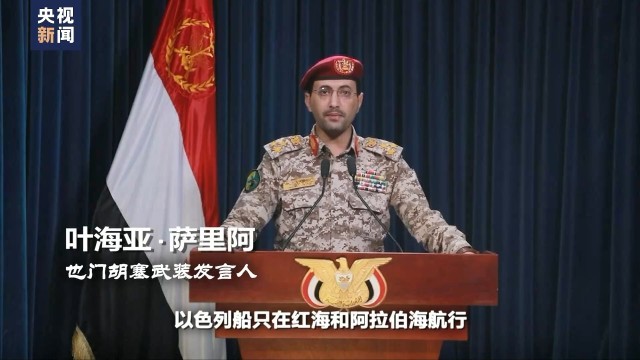 也门胡塞武装发言人 叶海亚·萨里阿:也门武装部队将继续阻止以色列船只在红海和阿拉伯海航行,直到以色列停止对我们在加沙地带的兄弟的侵略。