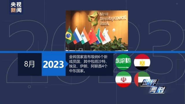 2023年8月,金砖国家宣布吸纳6个新成员国,其中包括沙特、埃及、伊朗、阿联酋4个中东国家。