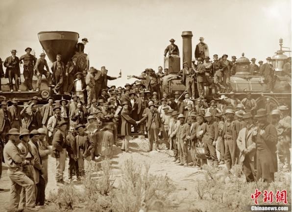 1869年5月10日,横贯北美大陆的铁路通车,原来从美国东部到西部需要六个月的路途缩短到只需一周,这条铁路也被誉为工业革命以来“世界七大工业奇迹”之一。