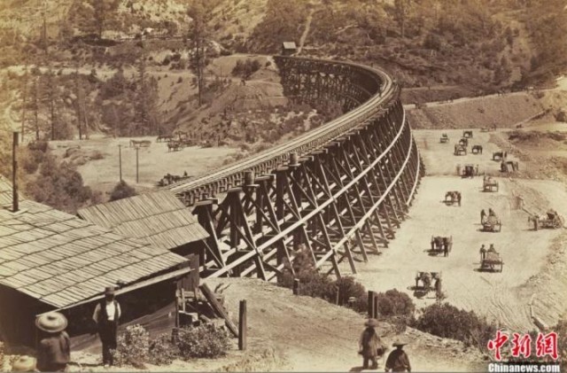 中央太平洋铁路上的栈桥。江门市博物馆供图