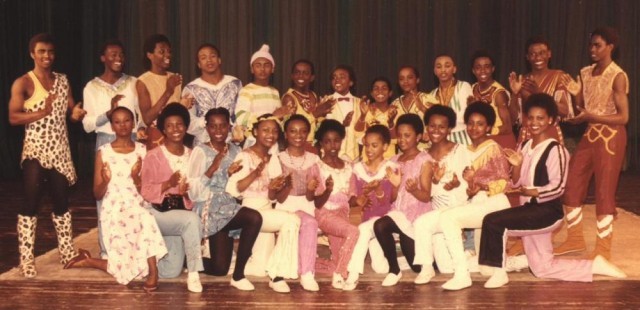 这张资料照片显示的是24名肯尼亚学生在1985年结业演出后的合影,卡维塔在后排左起第六位。新华社发(广州杂技团供图)