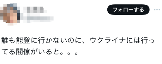 还有人说,“到现在(岸田内阁中)谁都还没去过能登,但却有内阁成员去了乌克兰……”