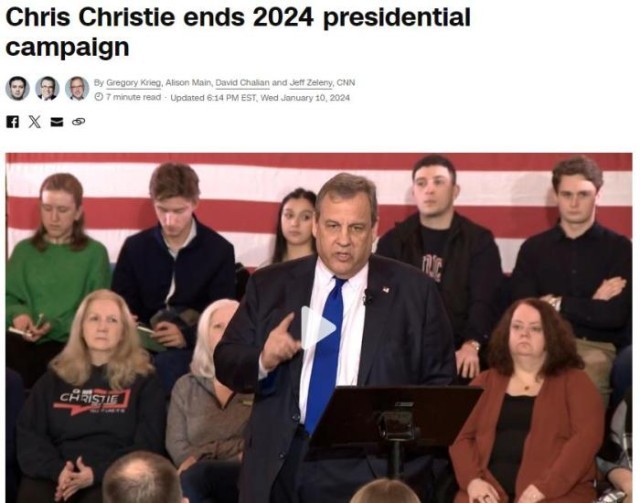 中新网1月11日电 综合外媒报道,美国前新泽西州州长克里斯蒂(Chris Christie)当地时间10日宣布结束2024年美国总统竞选。尽管克里斯蒂作为初选“战场”上前总统特朗普的主要批评者而备受关注,但他并未能在民调中获得广泛支持。