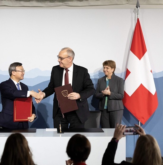 1月15日,中瑞领导人会谈后宣布完成中瑞自贸协定(FTA)升级联合可研,一致同意支持尽快启动正式升级谈判,今年年内举行新一轮中瑞外长级战略对话、金融工作组会议、能源工作组会议、教育政策对话、安理会事务磋商,以明年两国建交75周年为契机加强人文交流。同时,中国宣布将对瑞士实行单边免签政策,瑞方也表示将为中国公民和赴瑞投资的中国企业提供更多签证便利。