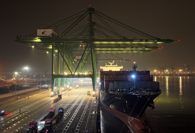 1月16日深夜,一艘巨轮横跨太平洋后,缓缓驶进天津港