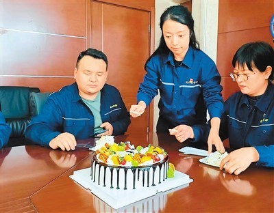 中哈(连云港)物流合作基地人员为马合江(左一)过生日。